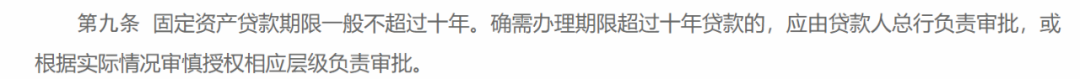 在贷款期限方面,该负责人介绍,本次修订明确,一是固定资产贷款期限一般不超过十年。确需办理期限超过十年贷款的,应由贷款人总行负责审批,或根据实际情况审慎授权相应层级负责审批。